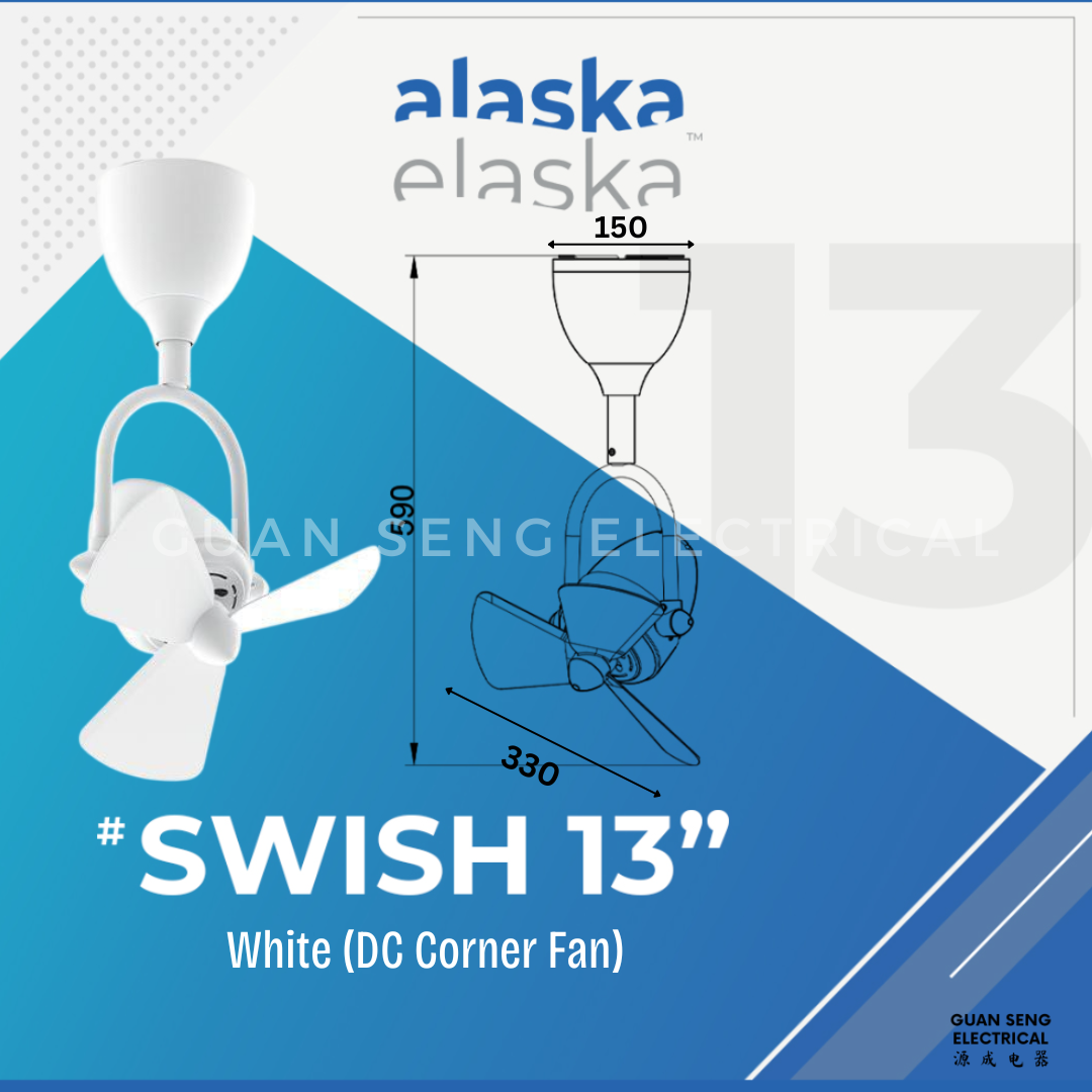 ALASKA SWISH 13″ Corner DC Ceiling Fan