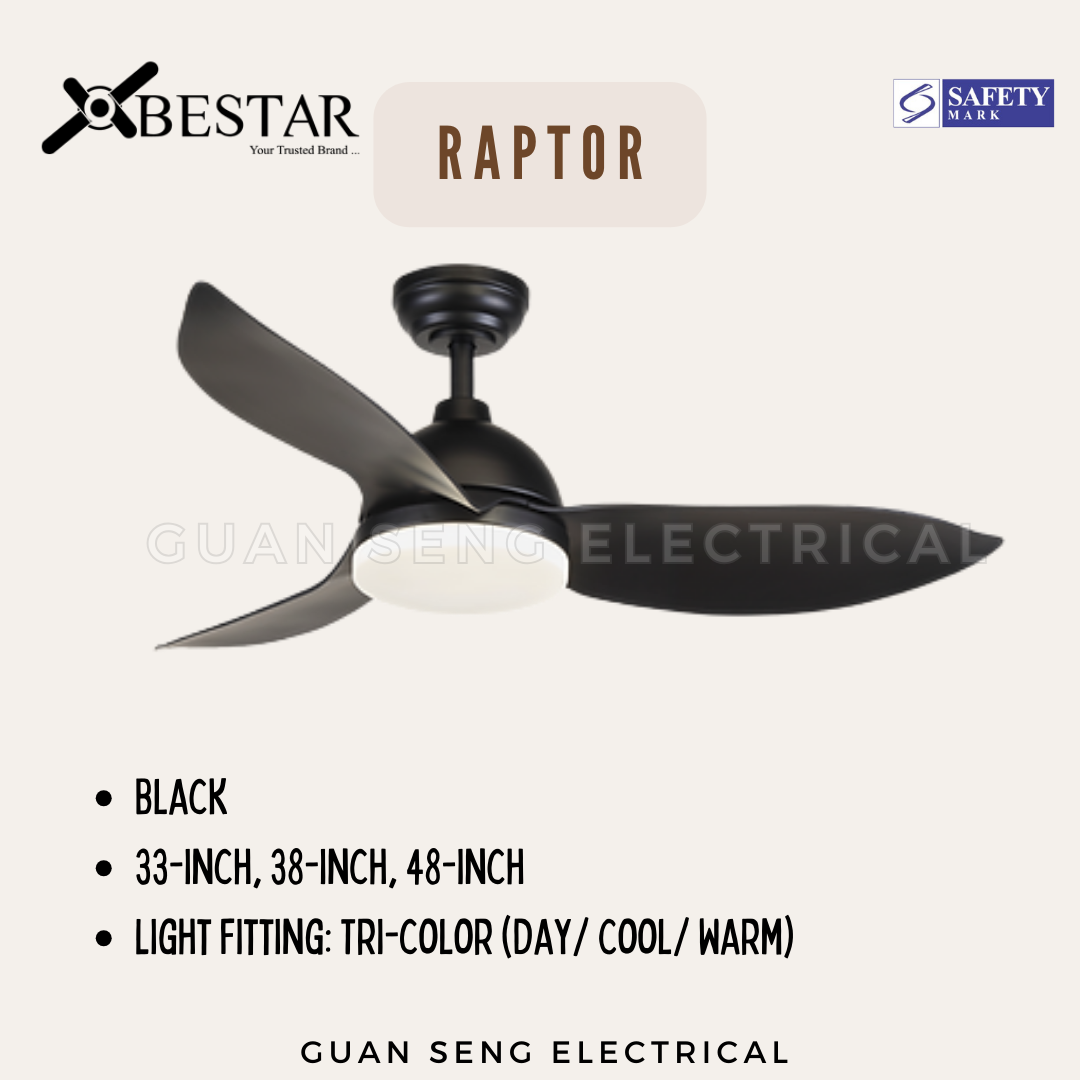BESTAR Raptor 33" 38" 48" DC Motor Ceiling Fan with Remote Control