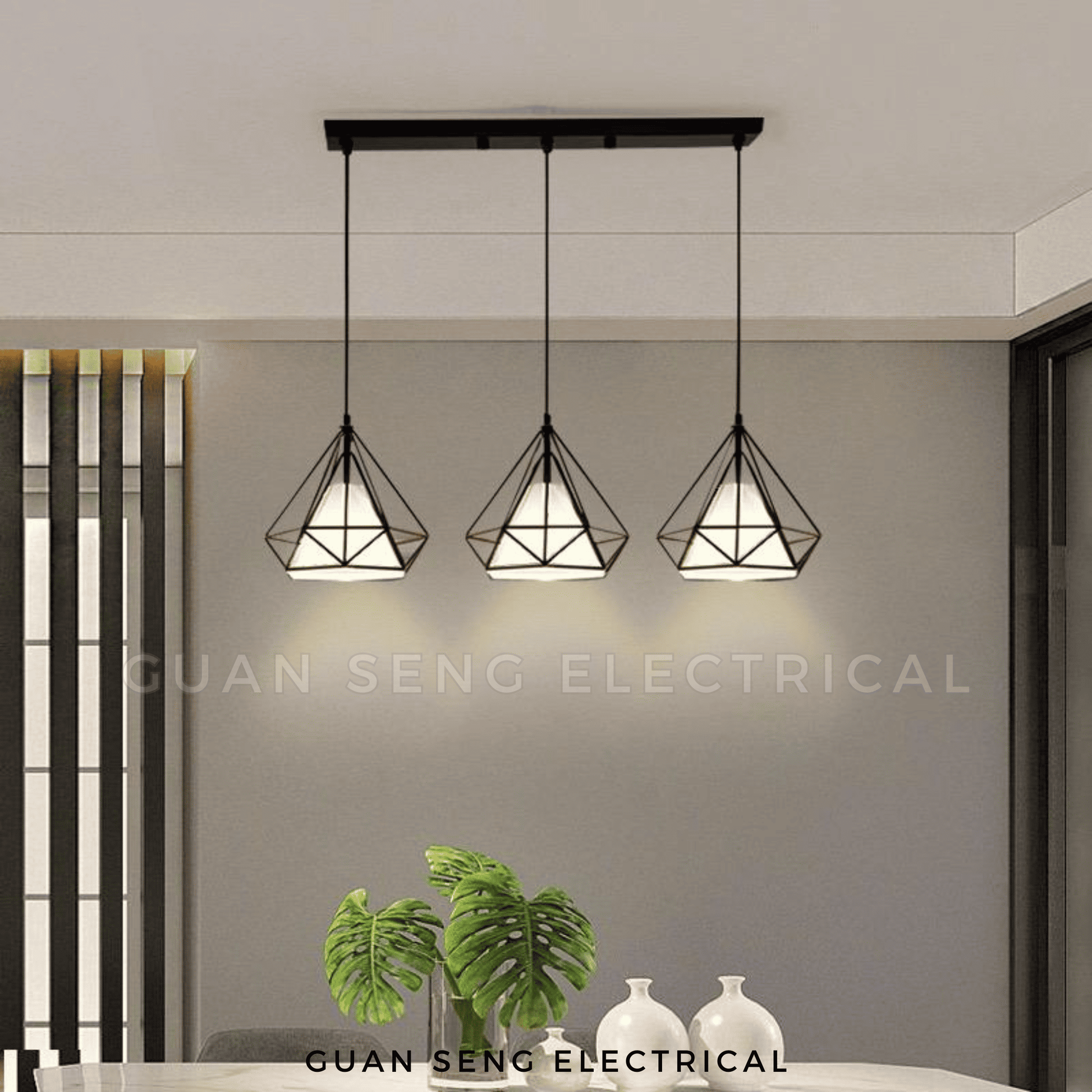 Diamond Pendant Light Black Gold E27 Bulb | Guan Seng Electrical