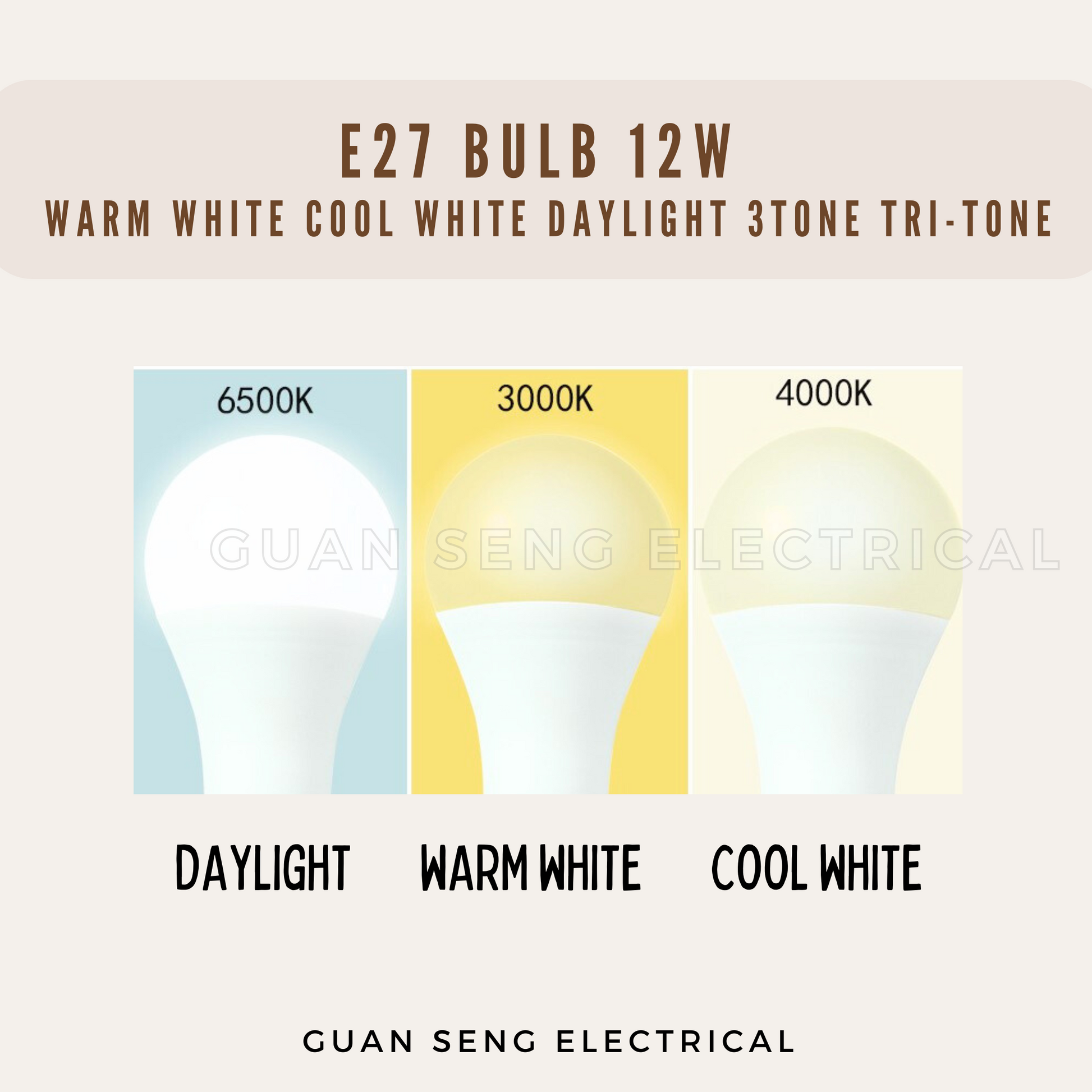 E27 Lightbulb 12W Warm White Cool White Daylight 3Tone Tri-tone