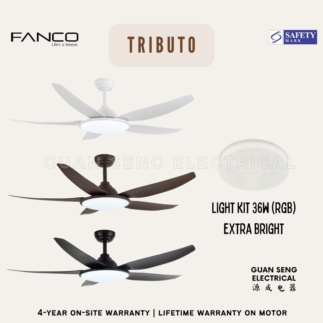 FANCO Tributo 46" 56" DC Motor Ceiling Fan with 3 Tone LED Light Kit and Remote Control