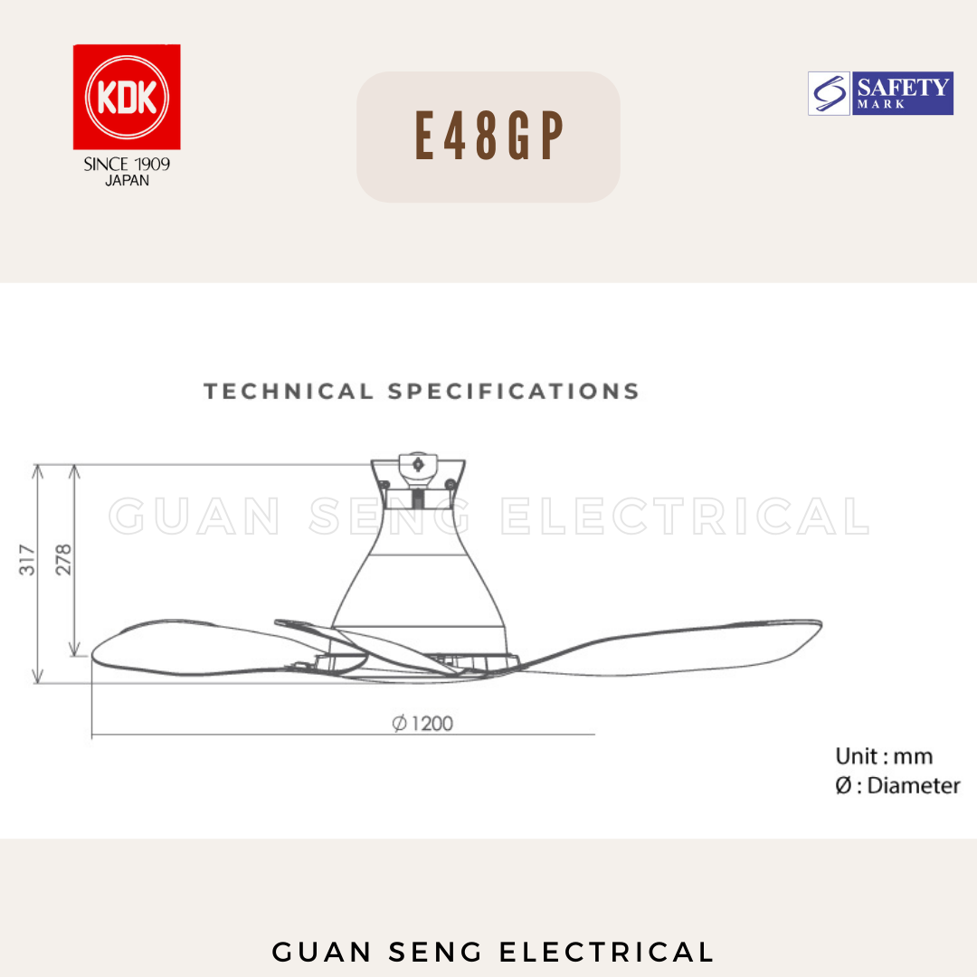 KDK E48GP DC Motor Ceiling Fan with LED Light Kit, Wi-Fi and Apps Control