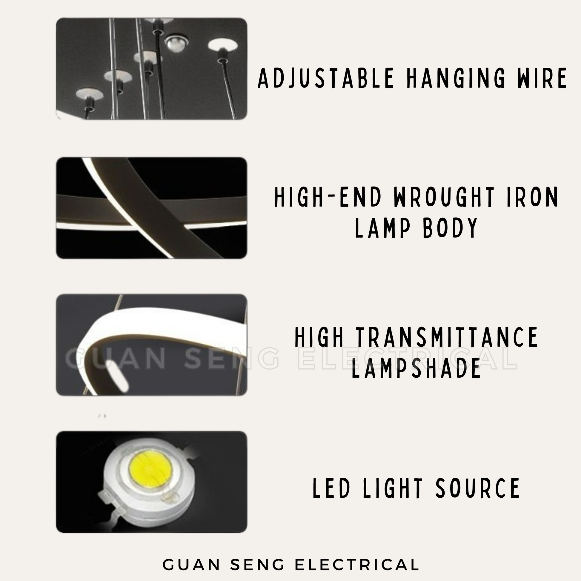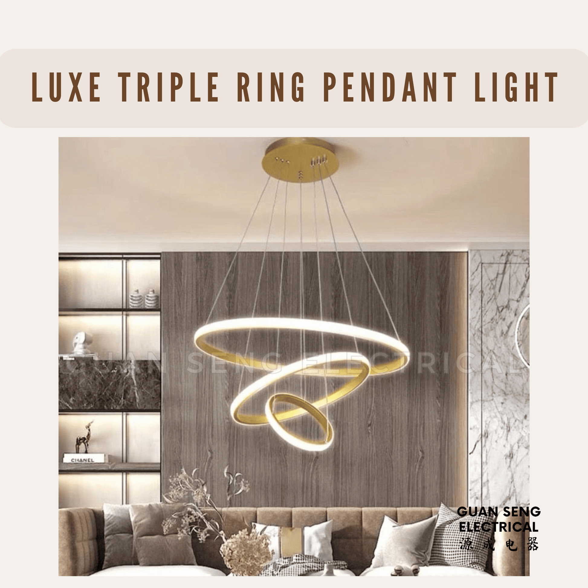 Luxe Triple Ring Pendant Light Black Gold With Remote Controller