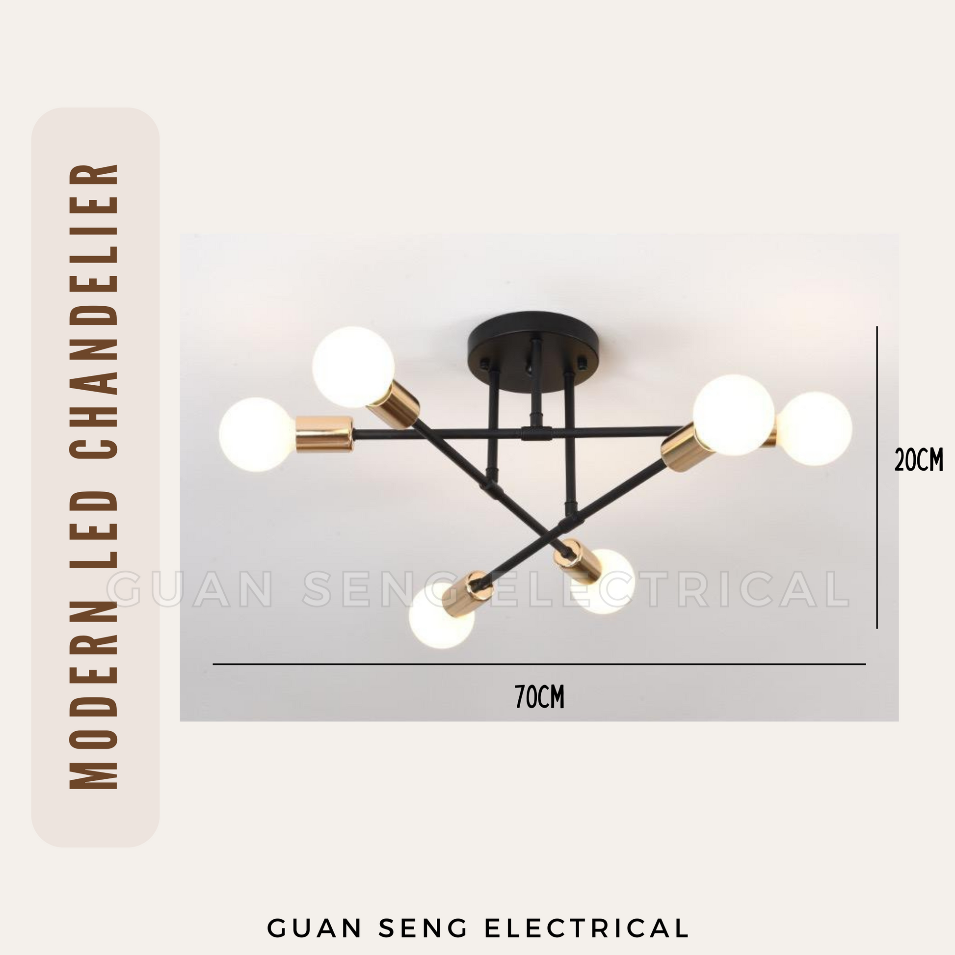 Modern LED Chandelier Ceiling Light E27 Bulb 6 Head