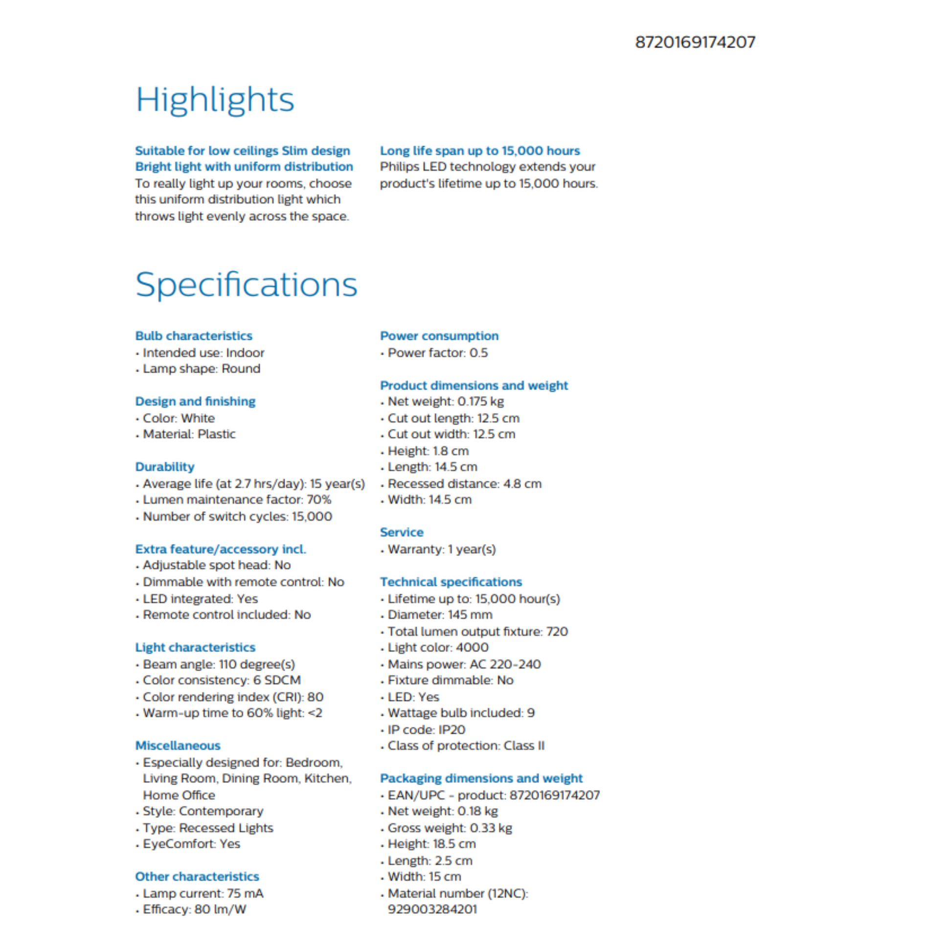 • Slim Design suitable for low ceilings