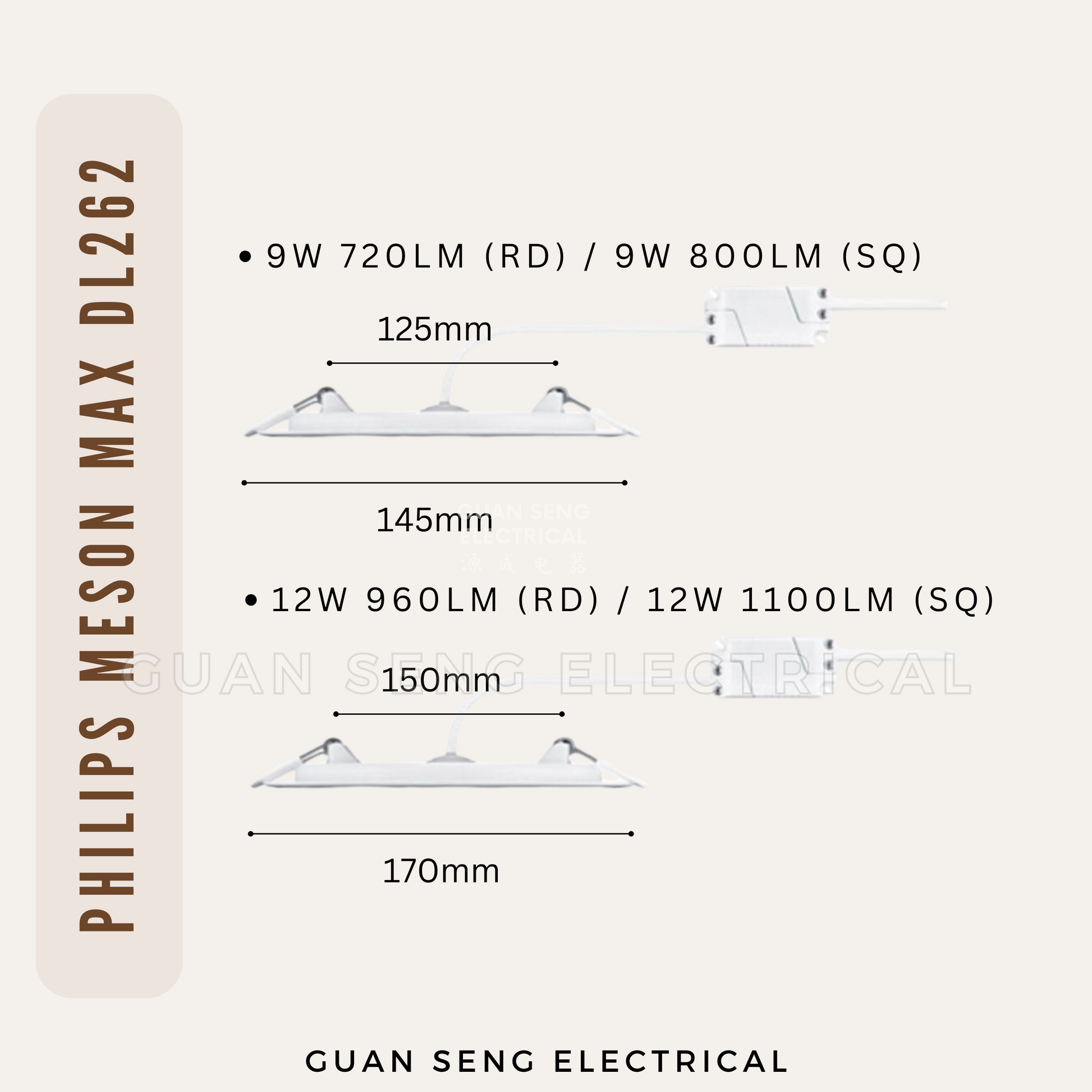 12W Round Lumen: 960LM, 9W Square Lumen: 1100LM