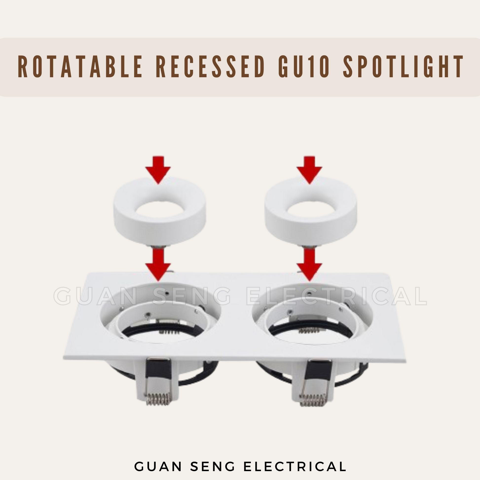 Rotatable Recessed GU10 Spotlight Downlight Double Head Square Double Axis Black White